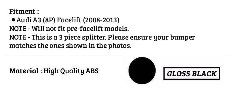 Audi A3 8P FACELIFT Gloss Black Front Splitter Spoiler Lip Body Kit 2008-2013