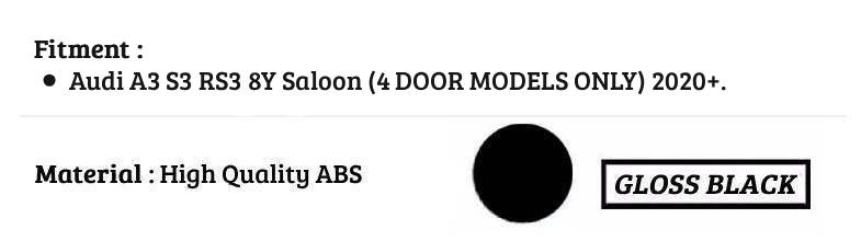 Fitment : Audi A3 S3 RS3 8Y Saloon (4 DOOR MODELS ONLY) 2020+.