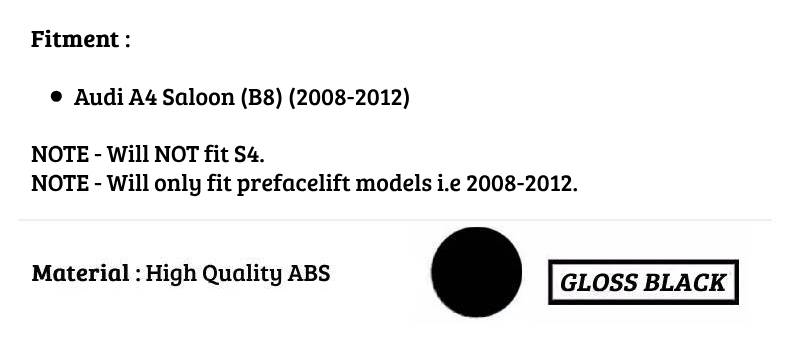 Fitment : Audi A4 Saloon (B8) (2008-2012)