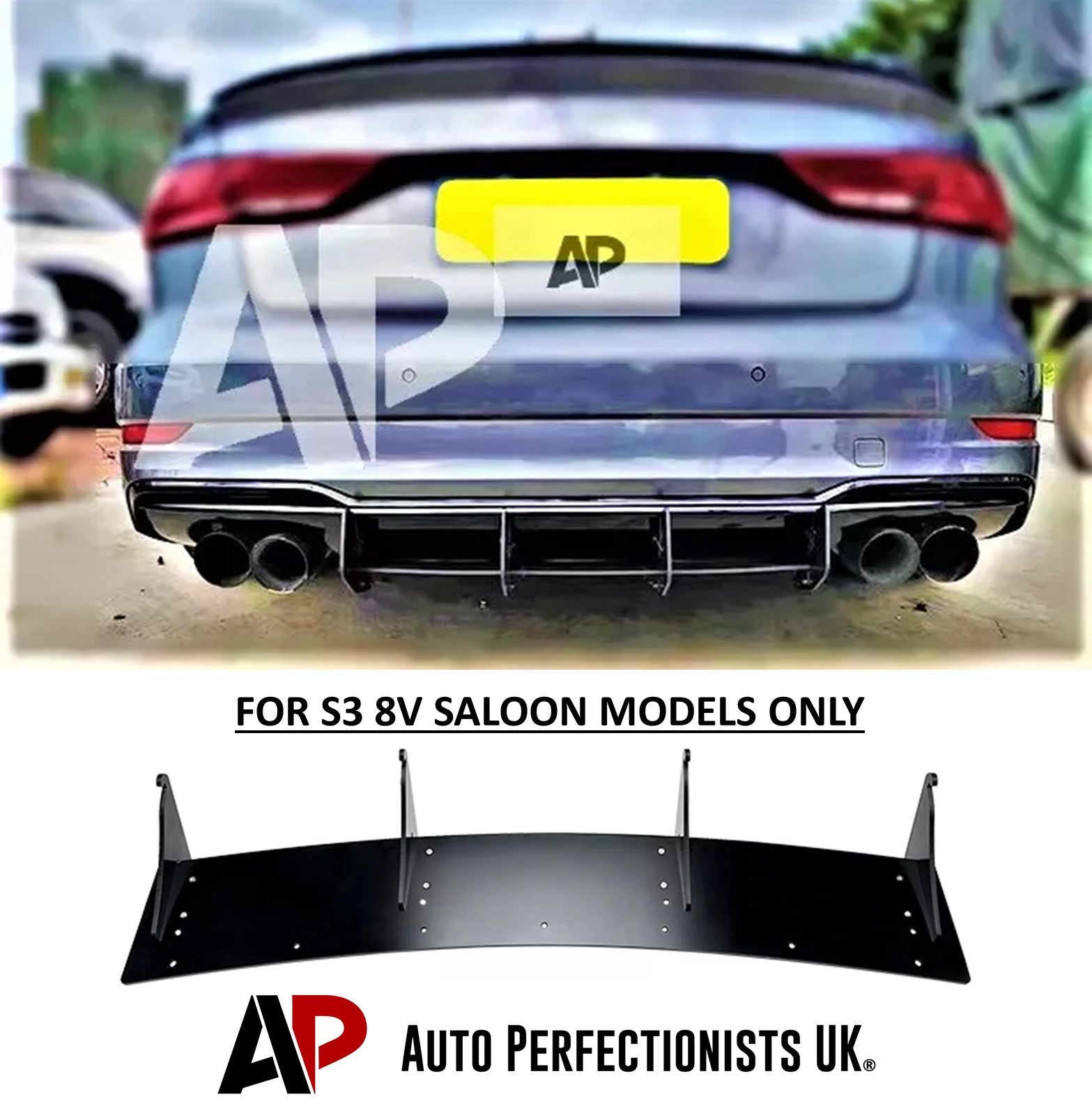 Audi S3 Saloon 8V Rear Blade Style Diffuser 2017-2020 Gloss Black
