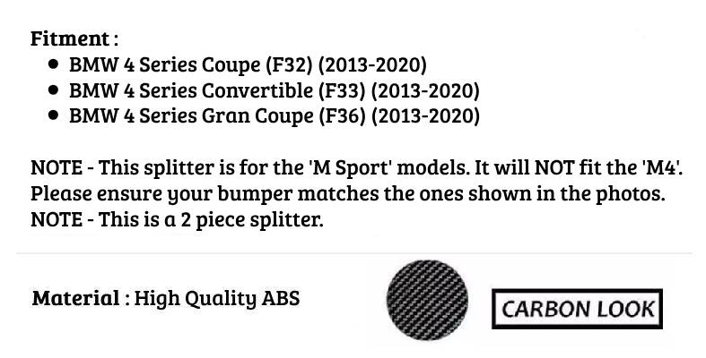 BMW 4 Series F32 F33 F36 Front Splitter 2013-2020 Carbon Fibre