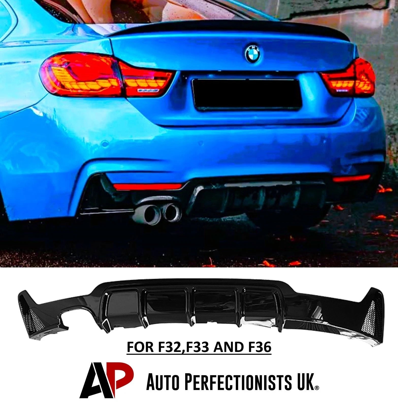 BMW 4 Series F32 F33 F36 M Sport Gloss Black Rear Diffuser Lip Valance Twin Exit
