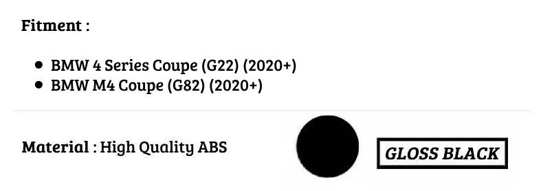 Fitment : BMW 4 Series Coupe (G22) (2020+), BMW M4 Coupe (G82) (2020+)