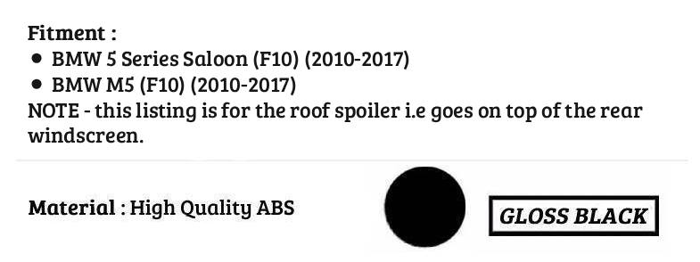 BMW 5 Series M5 F10 Gloss Black Rear Roof Spoiler Window Lip Wing Body Kit 10-17