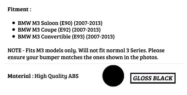 NOTE - Fits M3 models only. Will not fit normal 3 Series. Please ensure your bumper matches the ones shown in the photos.