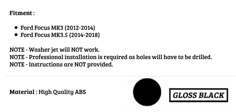 Fitment : Ford Focus MK3 (2012-2014), Ford Focus MK3.5 (2014-2018)