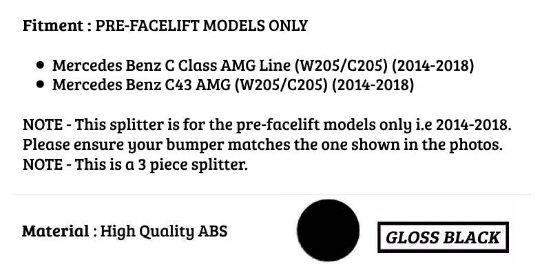 Fitment : PRE-FACELIFT MODELS ONLY Mercedes Benz C Class AMG Line (W205/C205) (2014-2018), Mercedes Benz C43 AMG (W205/C205) (2014-2018)