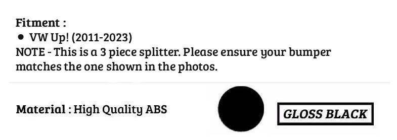 NOTE - This is a 3 piece splitter. Please ensure your bumper matches the one shown in the photos.